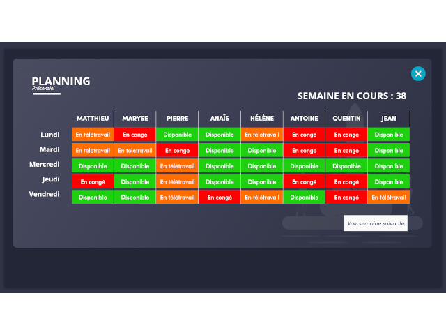 Planning d’équipe