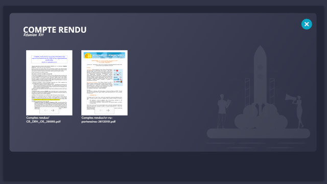 Le RH Dashboard offre un espace dédié à la documentation interactive, permettant de mettre en ligne et de partager rapidement les comptes rendus de réunions, les nouvelles directives de la direction, et tout autre document interne. Ces éléments sont consultables via un lecteur simple et intuitif, optimisant ainsi l’accès aux informations importantes sans gaspillage de papier.